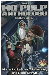 The introduction to this anthology laments the gap in the market for the “heavy on the action, light on the exposition” pulp stories made popular by such writers as Edgar Rice Burroughs (of “Tarzan” and “John Carter” fame) and H.P. Lovecraft. But the three writers of this anthology, Vincent J. LaRosa, TJ Martinell, and Noble Brown, have a solution: Write some damn good pulp stories of their own and get the blood flowing for a new generation into this once-beloved genre!